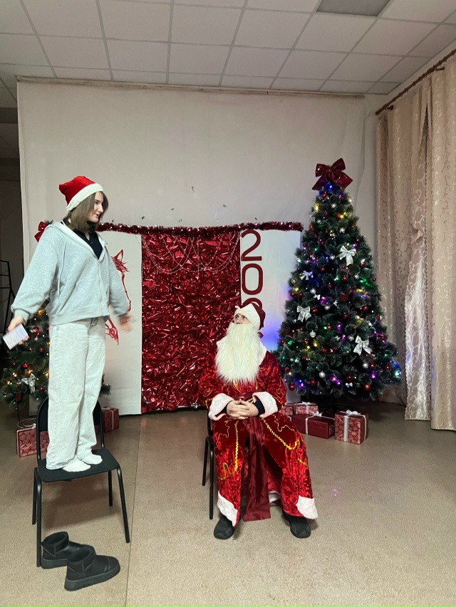 Конечно же, не обошлось и без сказочных персонажей, гостей пришел поздравить Дедушка Мороз, который принес с собой подарки за самый лучший стих и поздравил всех с Новым годом.