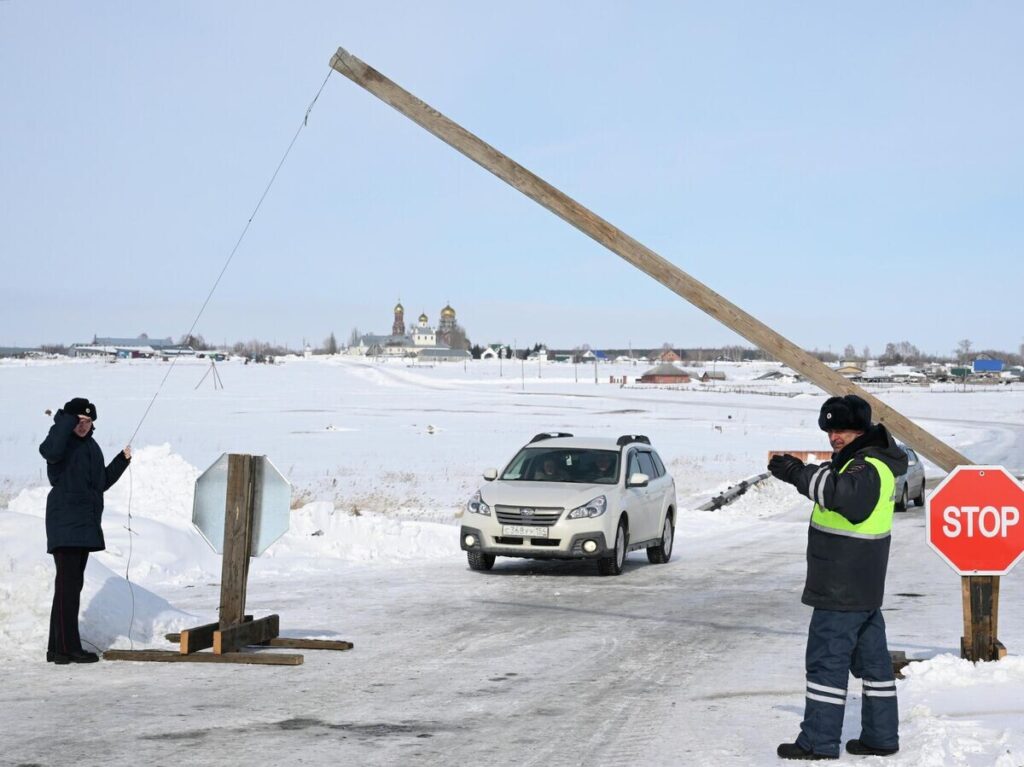 На фото: Сотрудники полиции на карантинном посту на въезде в село Козиха в Новосибирской области