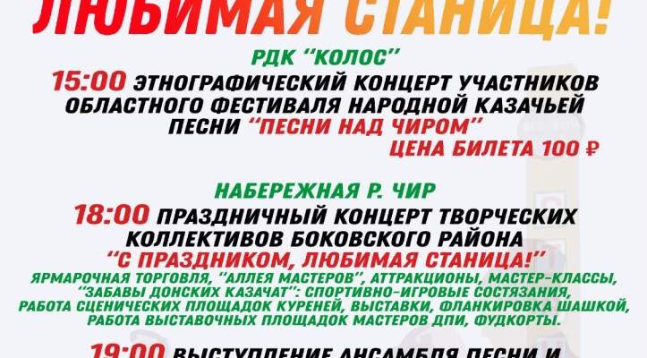 24 августа в Боковском районе пройдет областной фестиваль «Песни над Чиром» Ярмарочная торговля, «Аллея мастеров», аттракционы, мастер-классы, работа сценических