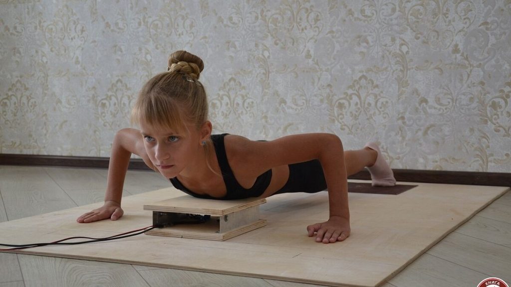 Речь идет о категории девочек девяти лет и отжиманиях на контактной платформе. Это уже третий рекорд Софии — она регулярно улучшает свои показатели и снова выходит на первое место.