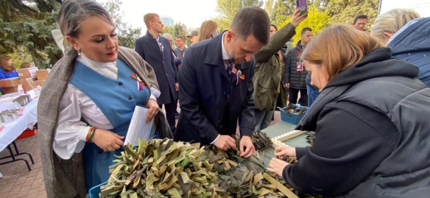 А у здания Областного дома народного творчества» гости фестиваля могли посетить площадку добрых дел. Для всех желающих были представлены мастер-классы по плетению маскировочных сетей и маскировочных шапок для участников СВО, изготовлению окопных свечей, сухого душа, браслета для выживания.