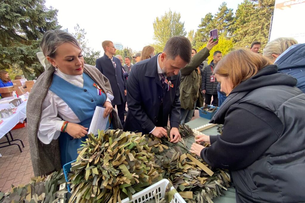 А у здания Областного дома народного творчества» гости фестиваля могли посетить площадку добрых дел. Для всех желающих были представлены мастер-классы по плетению маскировочных сетей и маскировочных шапок для участников СВО, изготовлению окопных свечей, сухого душа, браслета для выживания.