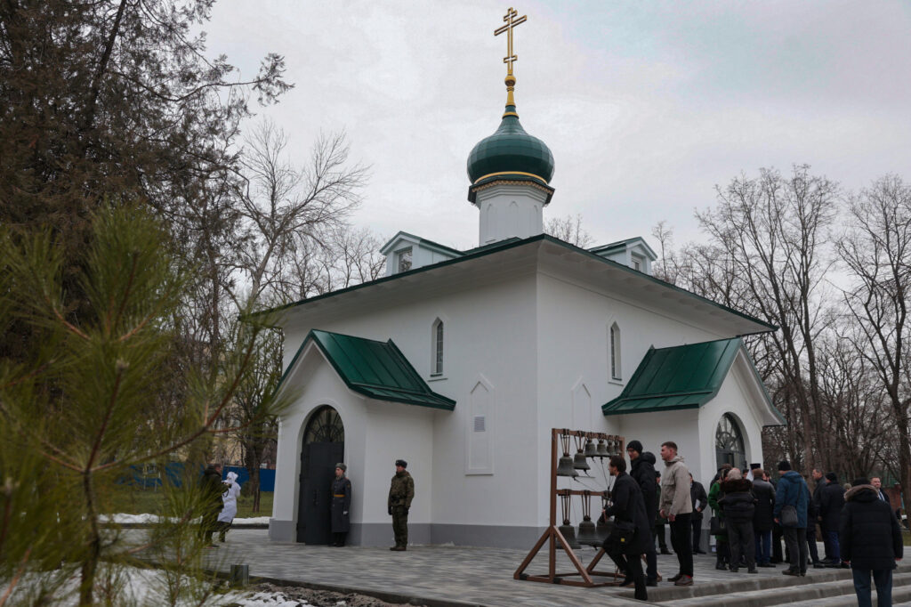 Чин освящения провел глава Донской митрополии митрополит Ростовский и Новочеркасский Меркурий. Почти год назад, 27 марта 2025 года, здесь была проведена церемония закладки первого камня. Владыка поблагодарил губернатора и правительство области за помощь в возведении храма.