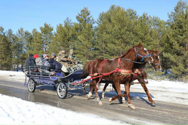 Во время народных гуляний казаки демонстрировали удаль, силу, ловкость. Нашлись богатыри, которые пробовали поднять 16-, 32-, 50-килограммовые гири. Несколько ловкачей штурмовали масленичный столб в попытке добыть вкусный приз, но подчинить его себе смогли только двое самых сноровистых казаков. Не менее важны и командные соревнования – распиловка дров, перетягивание каната, весёлая эстафета. А затем все вместе закружились в праздничный хоровод. Все вместе посетители пели любимые казачьи и современные патриотические песни.Почётными гостями Масленицы на конюшне были участники СВО и члены их семей, для которых все предложения музея были абсолютно бесплатными: вход на конюшню и экскурсия по ней, катания верхом и в экипаже, казачьи угощения.